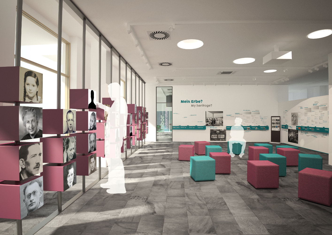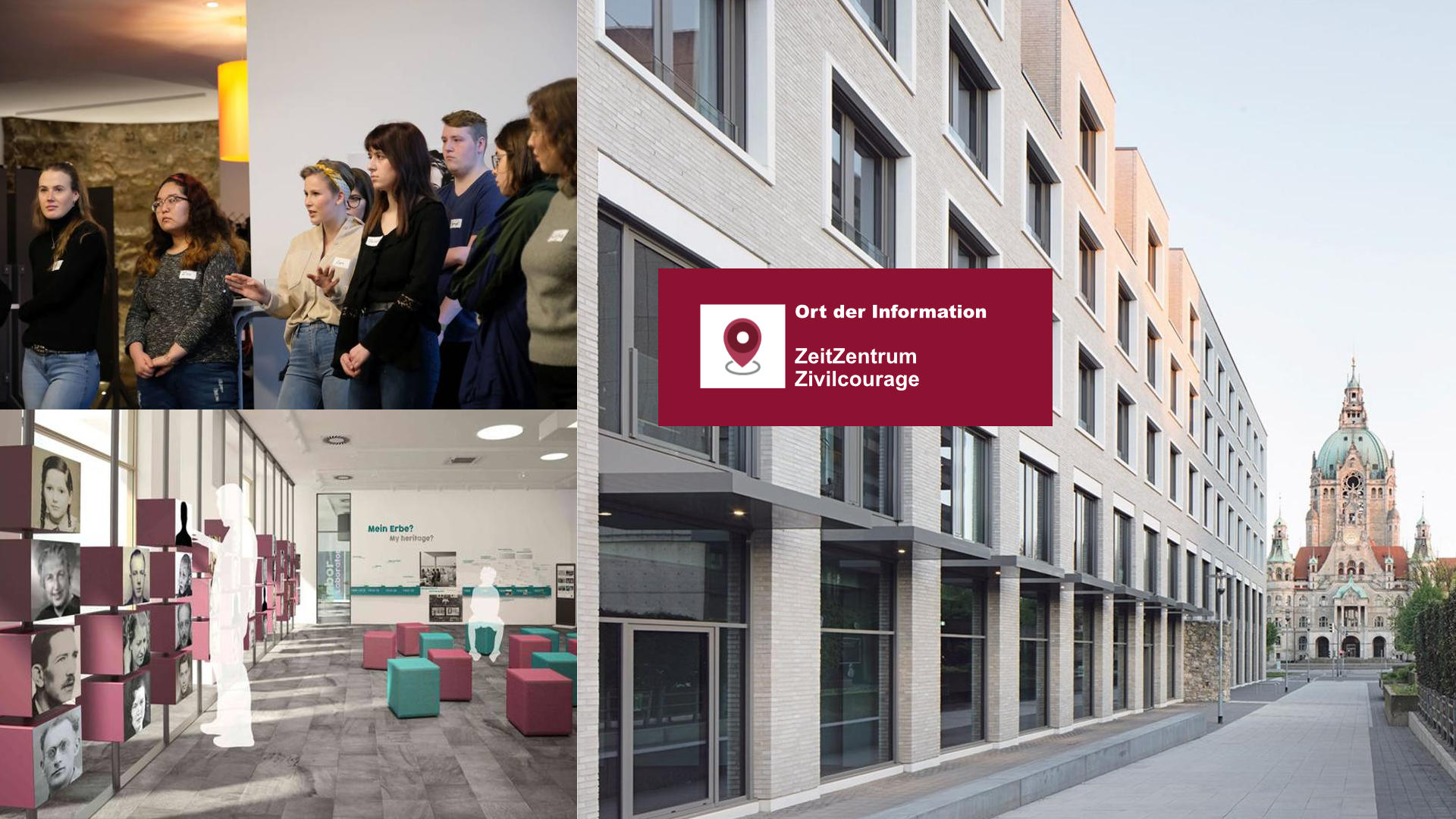 Hannover: Visualisierung des zukünftigen ZeitZentrums Zivilcourage, Stand 2019. Landeshauptstadt Hannover – Hannover: Workshop-Testphase im ZeitZentrum Zivilcourage vor der Eröffnung: junge FSJlerInnen der Türkischen Gemeinde Niedersachsen im Frühjahr 2020. Landeshauptstadt Hannover, ZeitZentrum Zivilcourage