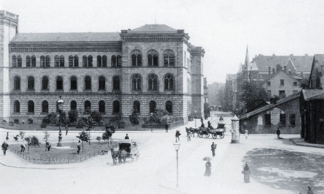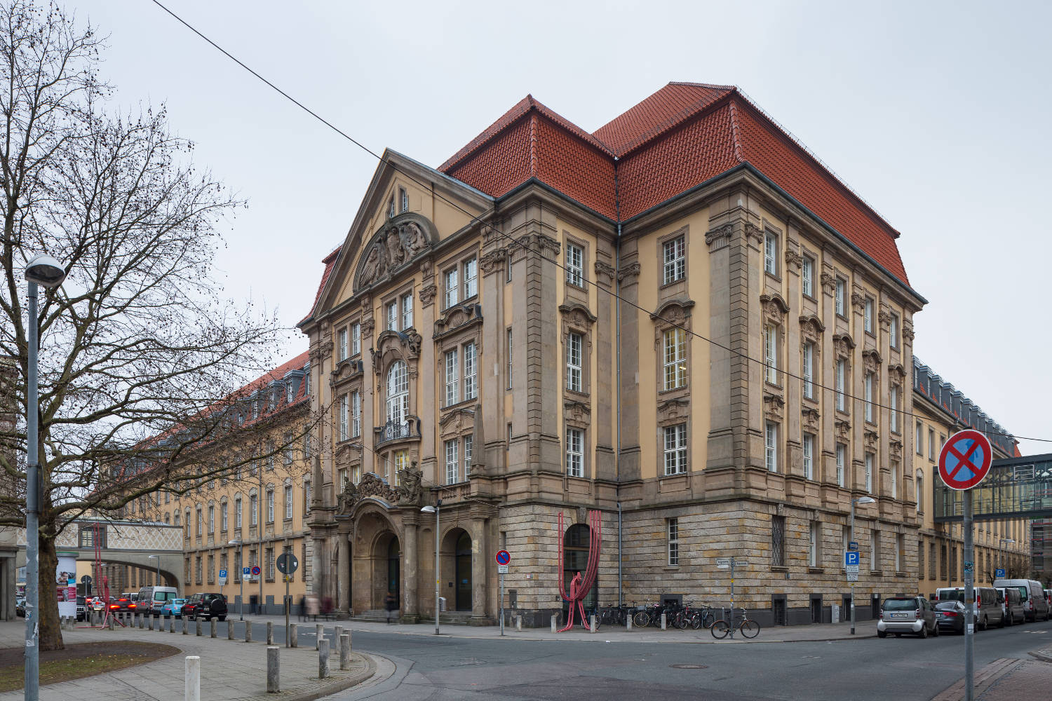 Hannover: Bleiverglasung im Treppenaufgang des Kurt-Schumacher-Hauses, traditioneller Sitz der SPD im Gebäude Odeonstraße 15/16 in Hannover-Mitte. Foto von Bernd Schwabe in Hannover, 2012. Wikimedia Commons
