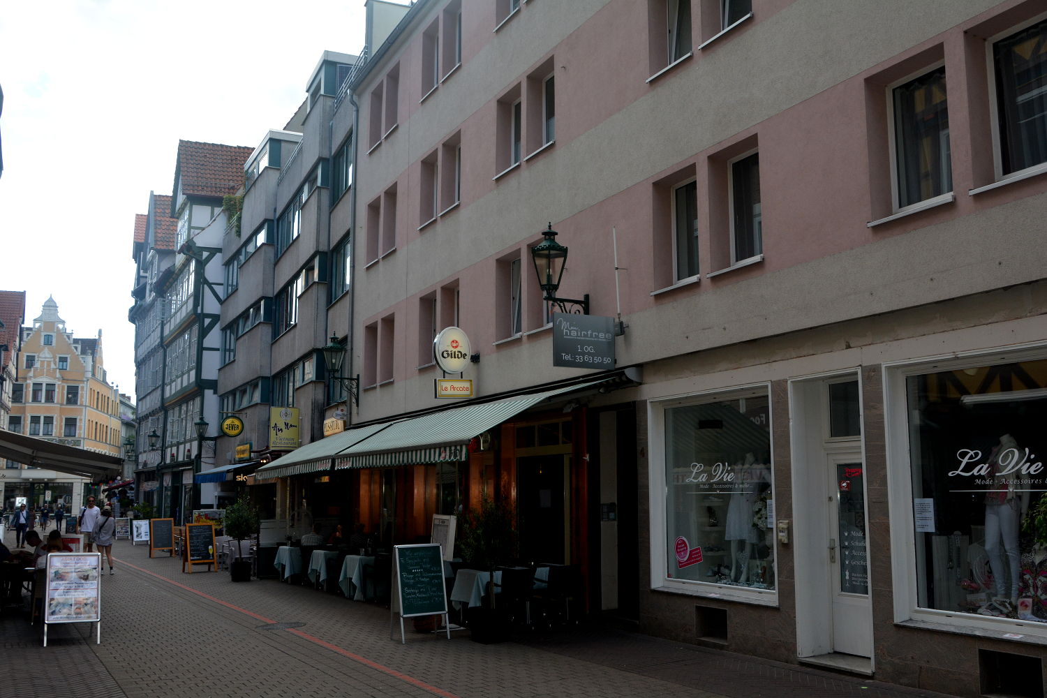 Hannover: Blick in die Kramerstraße in Richtung Holzmarkt, rechts der Nachkriegsbau Kramerstraße 4. Foto Michael Pechel, 2020