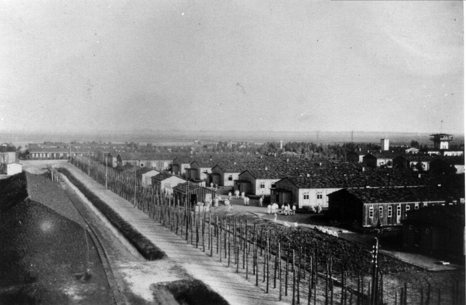 Moorlager: Am 20. Juni 1933 wurde vom preußischen Innenminister Hermann Göring festgelegt, in Börgermoor, Esterwegen und Neusustrum drei Lager für etwa 5000 „Schutzhäftlinge“ zu errichten. Blick von einem der Wachtürme auf das KZ Neusustrum, Fotograf und Datum unbekannt. Wikimedia Commons