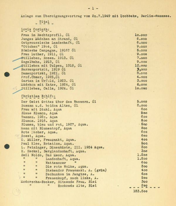 „Römische Campagna“, 1914 von Lovis Corinth gemalt, 1933 vom jüdischen Sammler Curt Glaser zwecks Emigration versteigert. Vor 1945 gelangte es in die Sammlung von Conrad Doebbeke aus Berlin. Dieser verkaufte das Werk – gemeinsam mit mehr als 100 anderen Werken großteils ungeklärter Herkunft – im Jahr 1949 an die Stadt Hannover. Seit 1950 befand sich das Gemälde als Dauerleihgabe der Stadt in der Landesgalerie des Niedersächsischen Landesmuseums Hannover. 2007 wurde es an die Erben des früheren Eigentümers restituiert. Lower Saxony State Museum, catalogue: Q27927940, 635. Wikimedia Commons